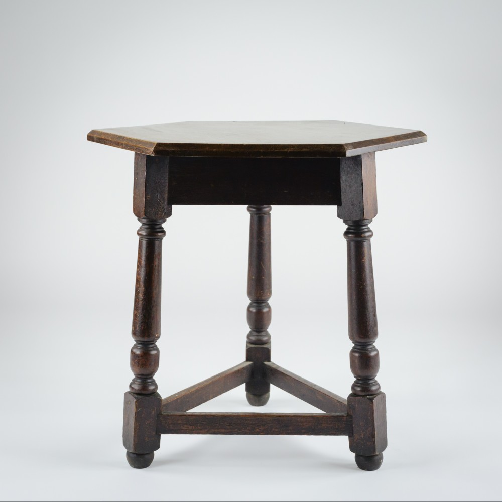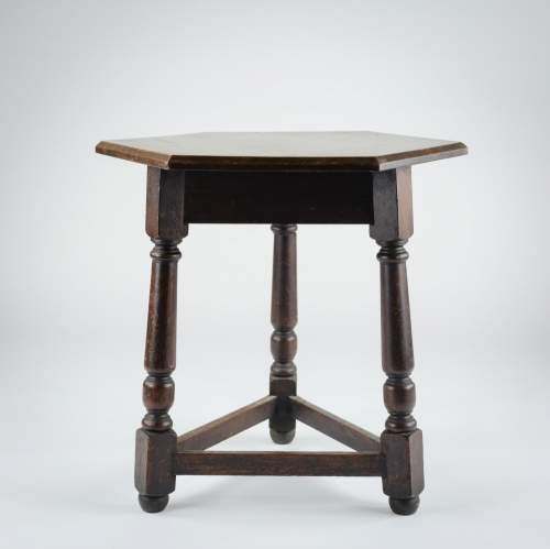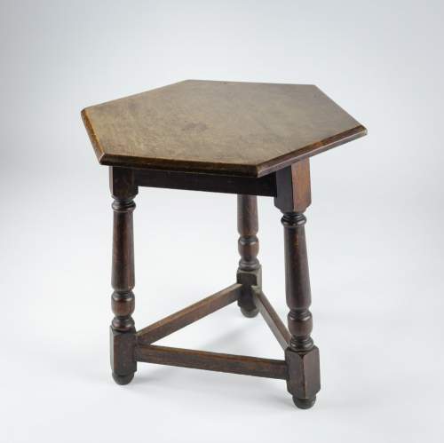 Stock Number: 4490Late 19th Century Cricket Table. Strong and robust, good thick chamfered hexagonal top of Oak. Great patination. England, Circa 1890.