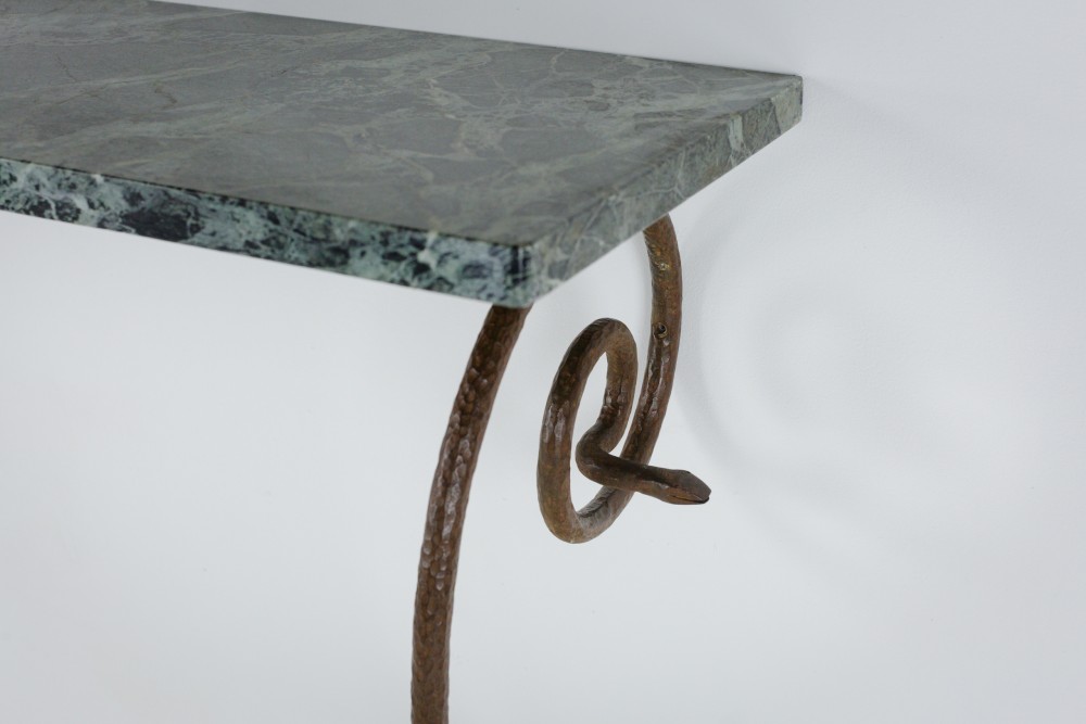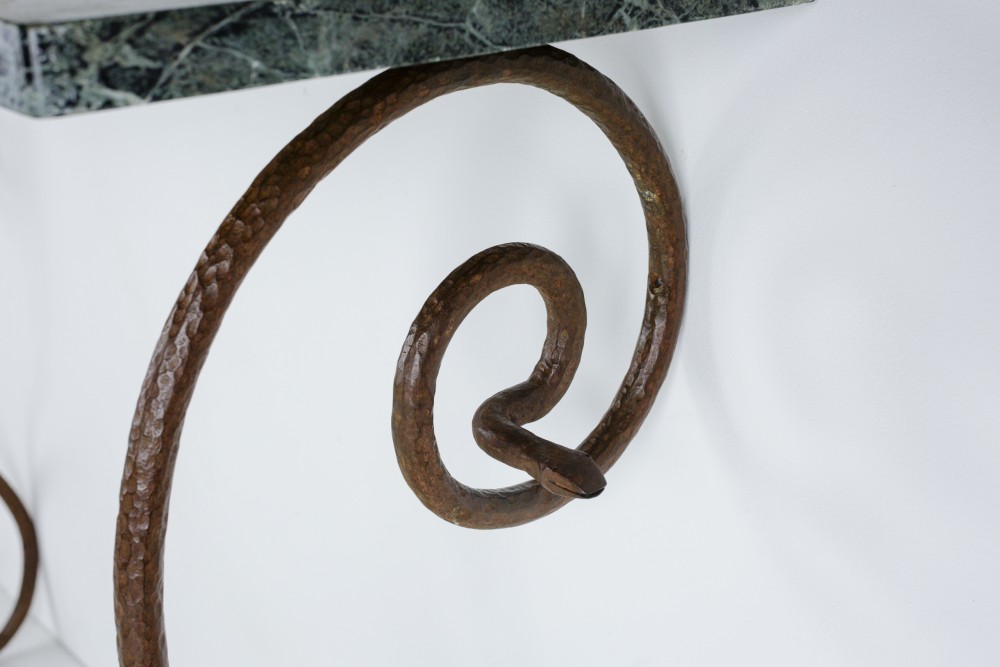 Wrought Iron and Marble Serpent Console in the Manner of Paul Poiret