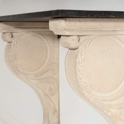 Carved Limestone and Black Marble Console