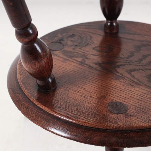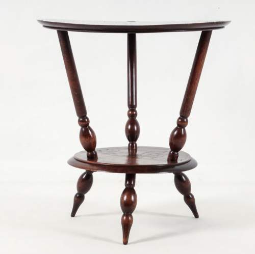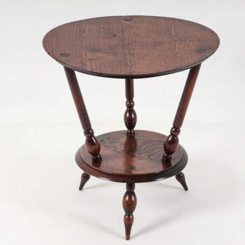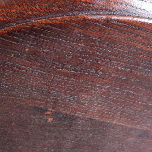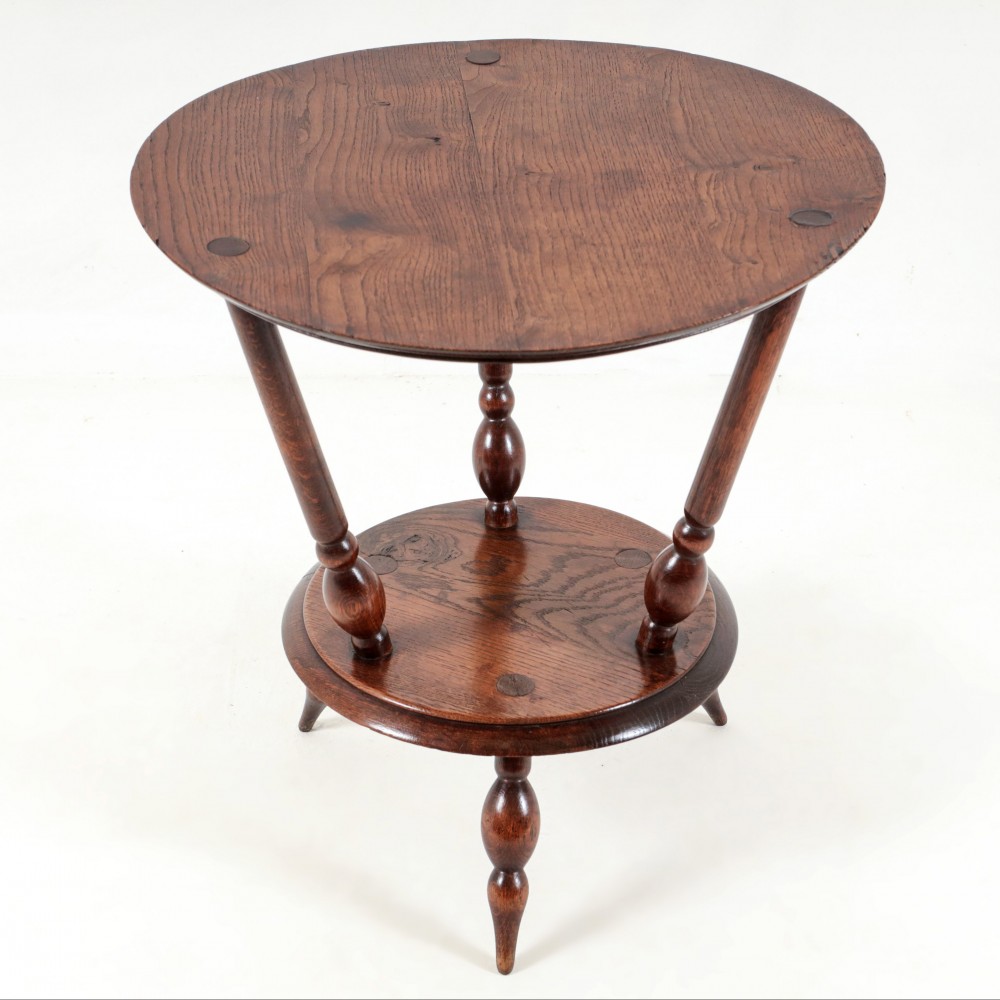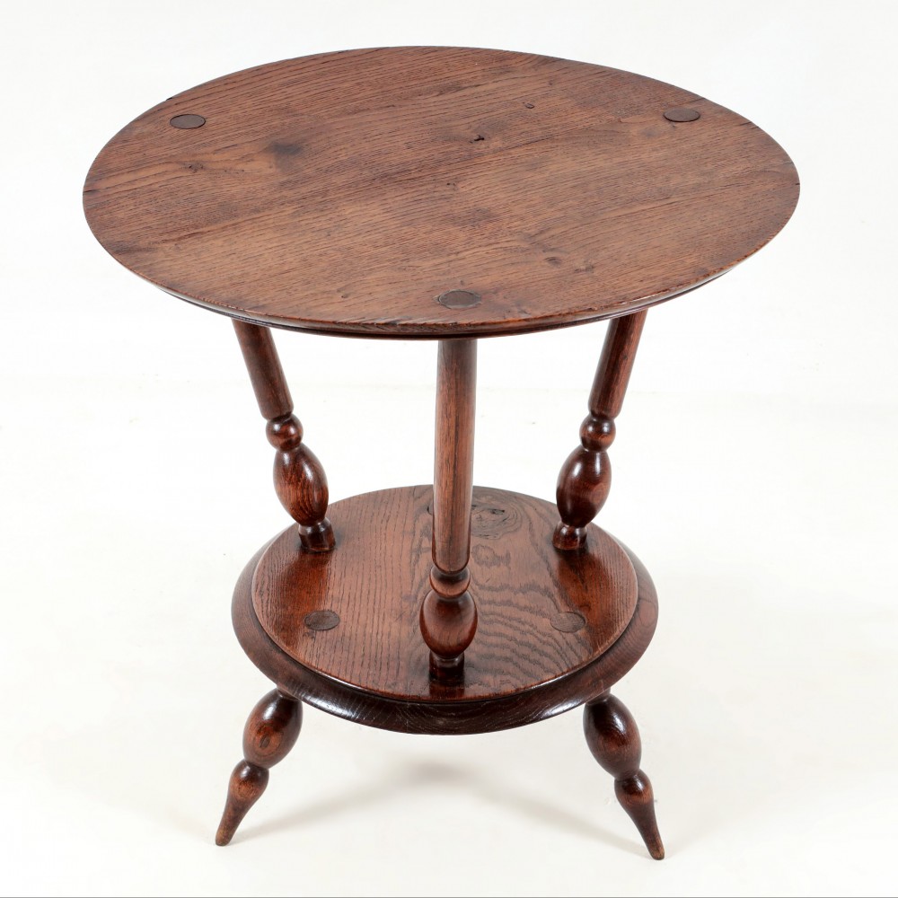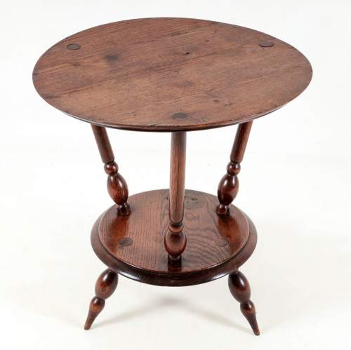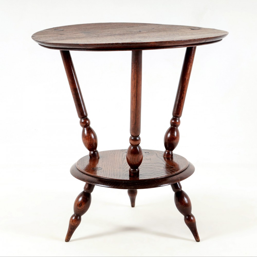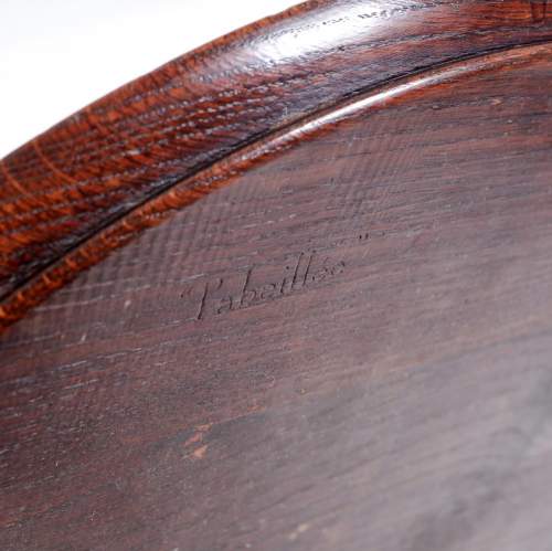 Stock Number: 4512Charles Dudouyt (attributed) Side Table for L'Abeillee. An elegant solid oak side table attributed to Charles Dudouyt, produced by the atelier L'Abeilee in Pontoise, or Saint Ouen L'aumone, France. Circa 1925. This piece exemplifies Dudouyt's rustic modern aesthetic with turned tapering legs joined by a circular undertier and a subtly shaped top. The table bears a clear stamp "L'Abeillee" to the underside confirming its workshop origin. Finished in its original dark oak patina. Oak. Good condition commensurate with age. Stamped L'Abeille to underside Provenance. Private Collection, France. Circa 1925. Historical Context Charles Dudouyt (1885 - 1946) founded L'Abeille in 1922 in Pontoise, later moving production to Saint Ouen l'Aumone. The workshop produced hand crafted oak furniture blending rustictradition with early modernist design. Furniture bearing the L'Abeillee mark dates between 1922 - 1931. Comparable examples of Dudouyts work for L'Abeillee are documented at the Musee Tavet-Delacour.