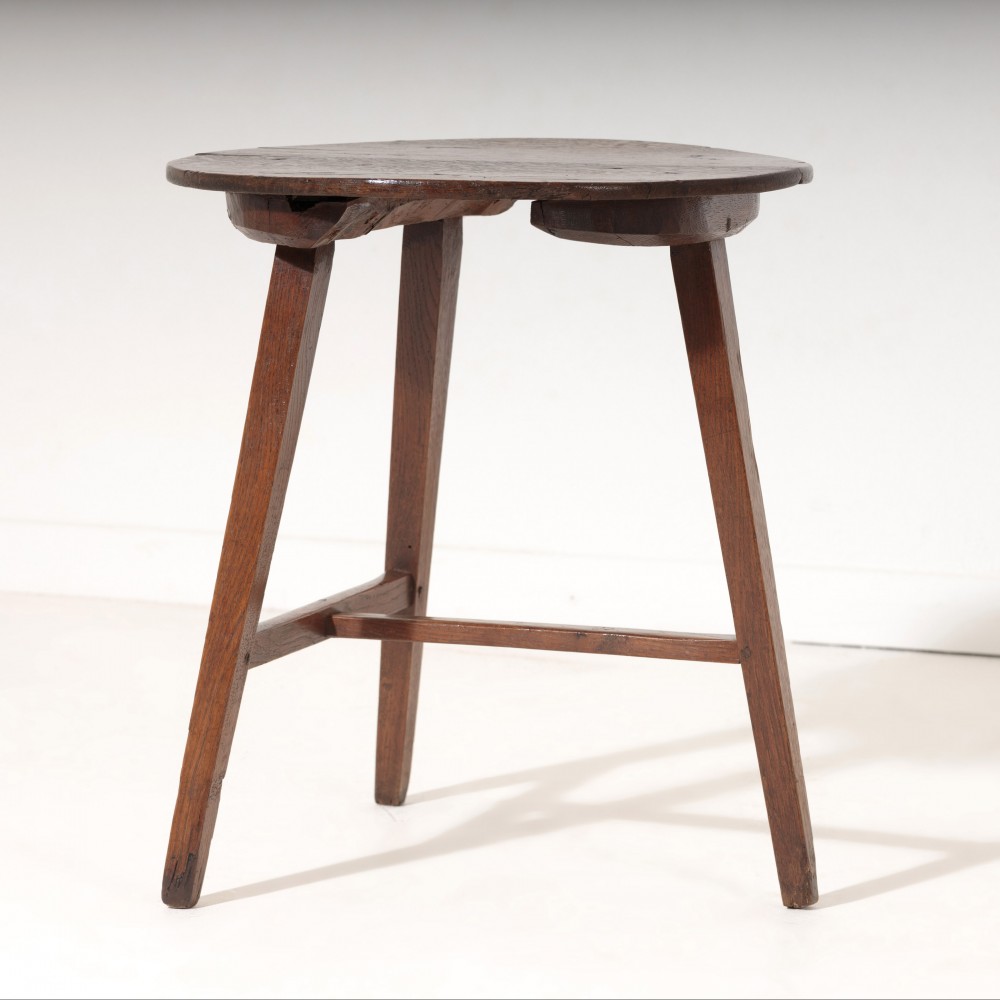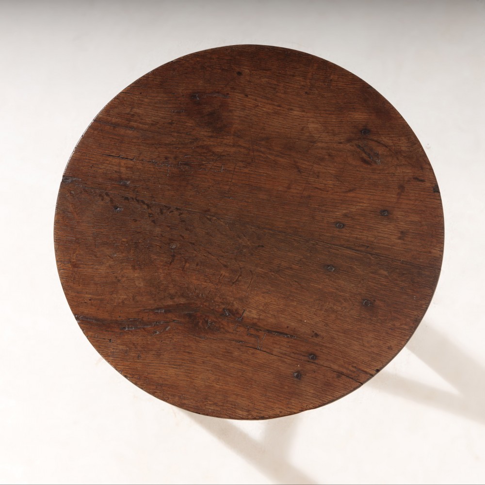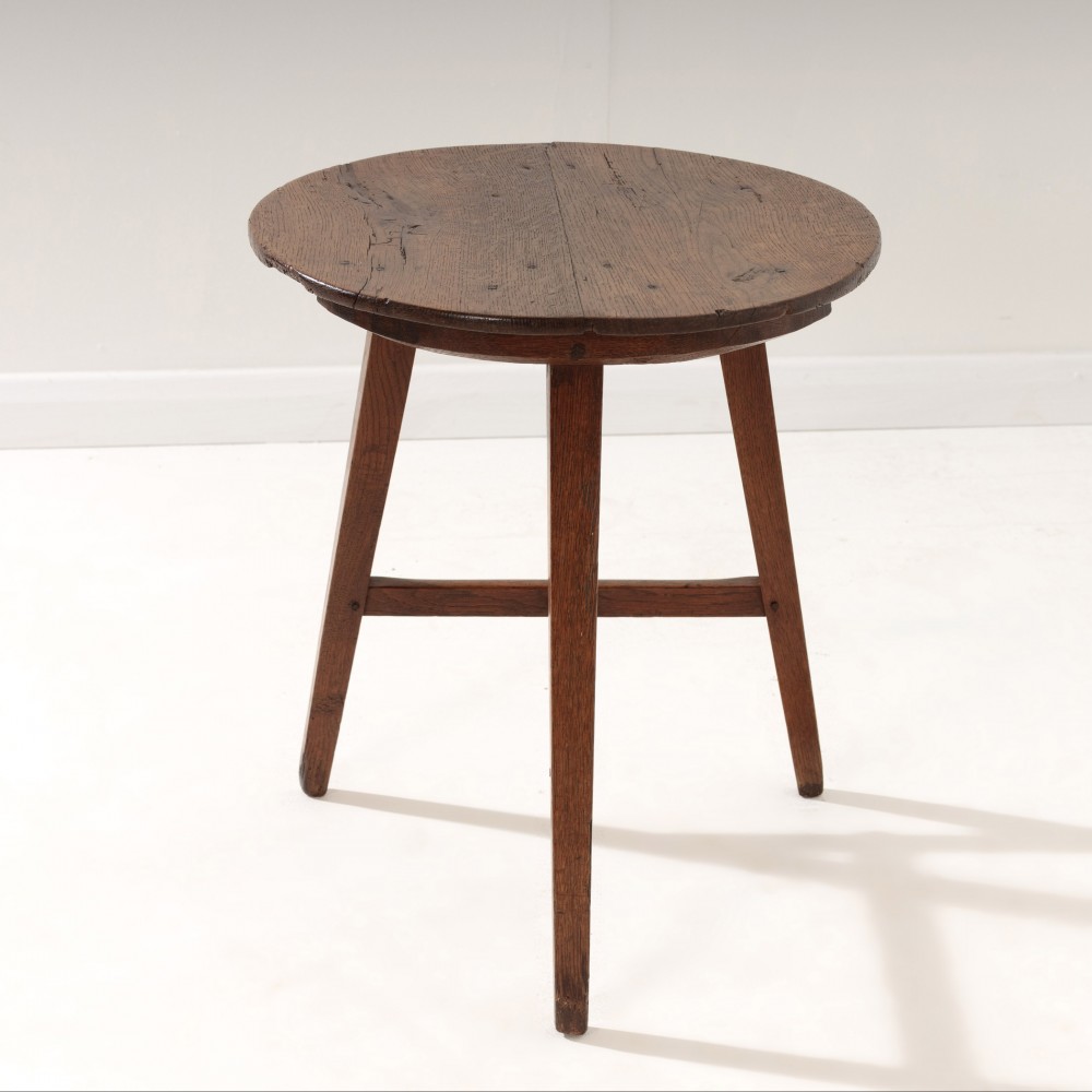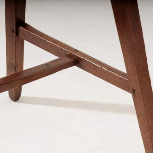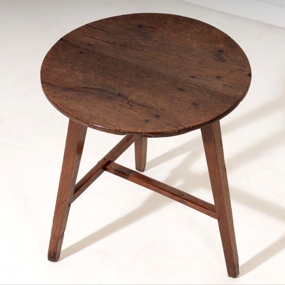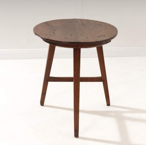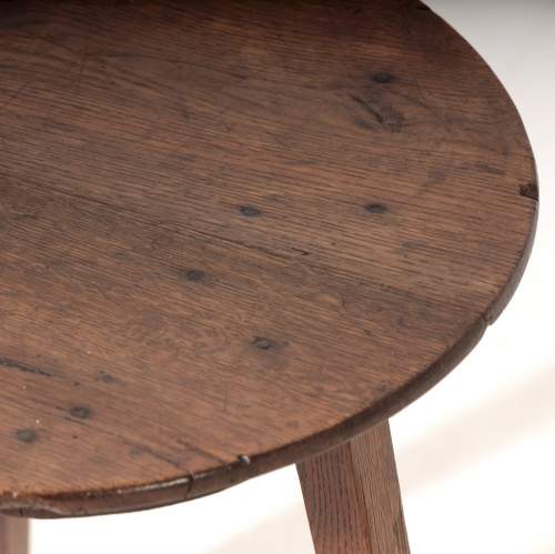 Stock Number: 4502Oak Cricket Table. Primitive two plank top, T stretcher construction. Solid and robust. pleasing patina. England, Circa 1880.
