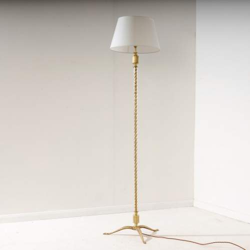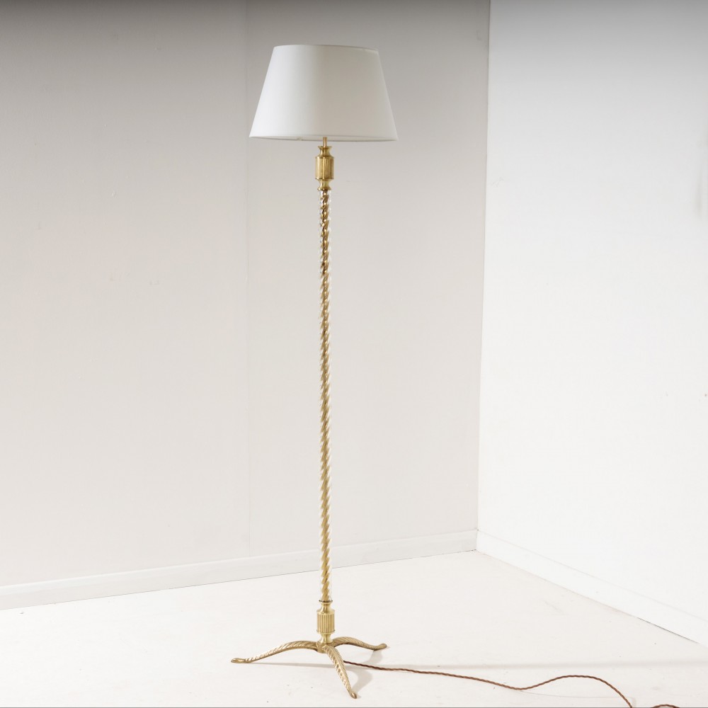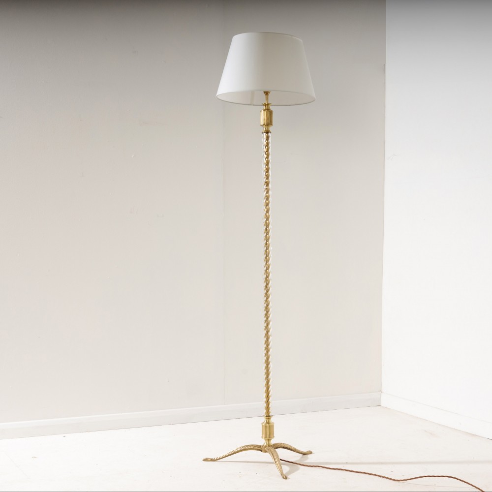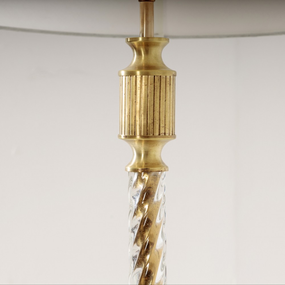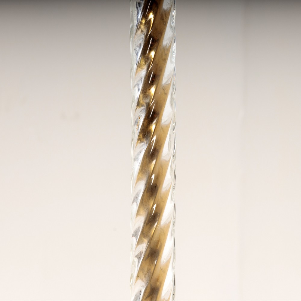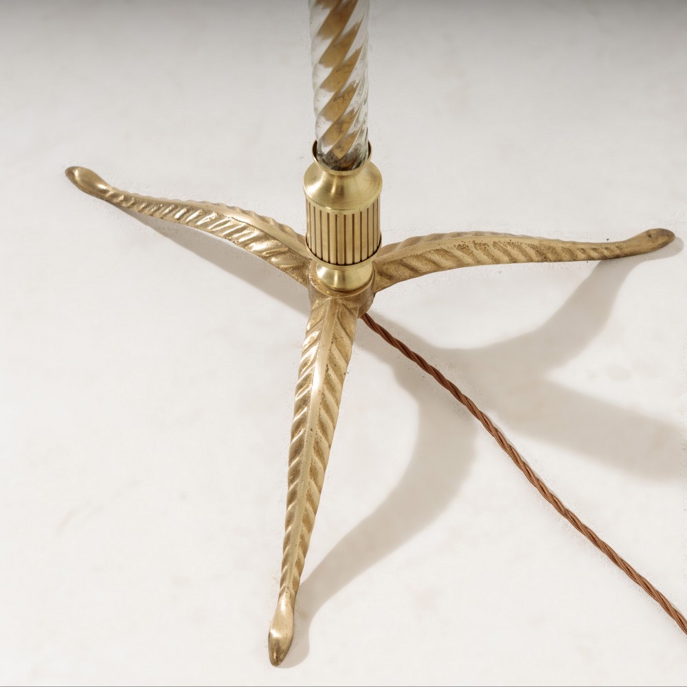 Stock Number: 4519Smart 1960's Brass and Glass floor Lamp. Super Chic, lightly polished, excellent condition, the brass stem covered in twisted glass diffuses the light beautifully. France, Circa 1960.