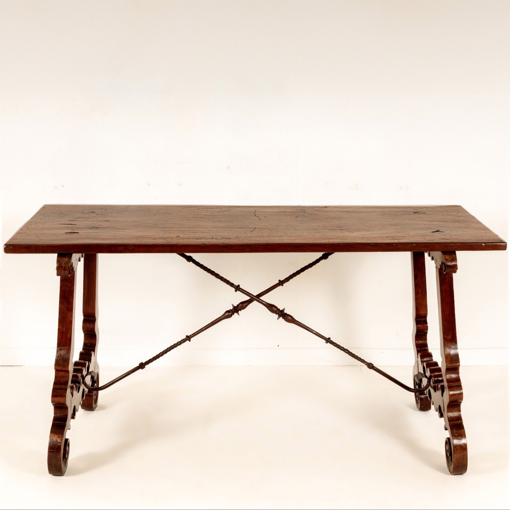 Extraordinary 19th Century Italian Walnut Trestle Table