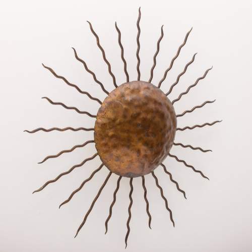 Sunburst applique wall or ceiling light sconce. Gilt Metal. Rewired and PAT tested. Spain, Circa 1960.