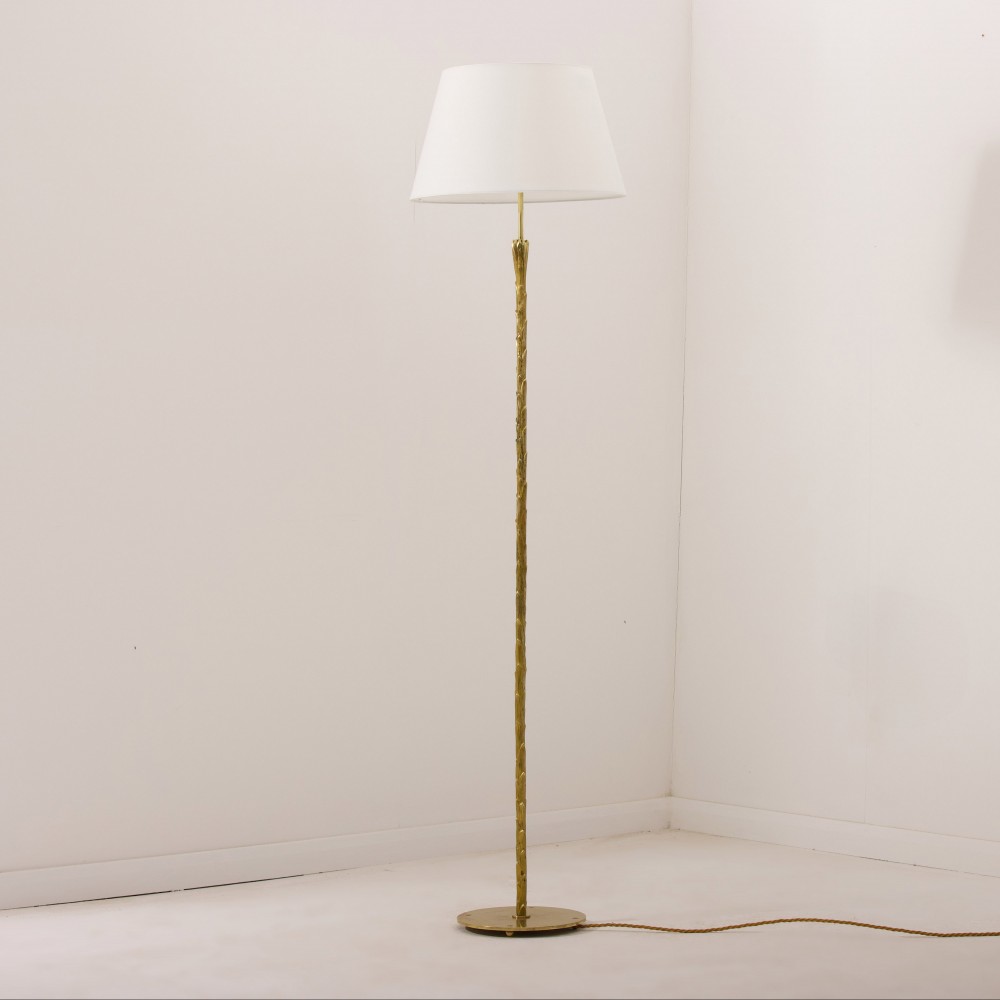 Stock Number: 4555Exquisite palm tree floor lamp in the manner of Maison Bagues. Unmistakable elegance, crafted in gilt bronze and brass. France, Circa 1950.