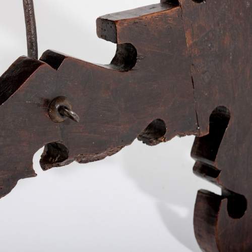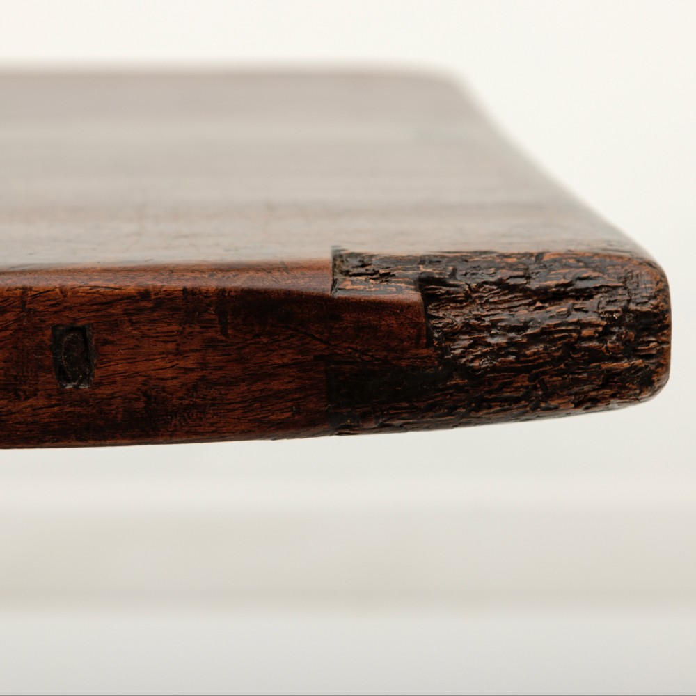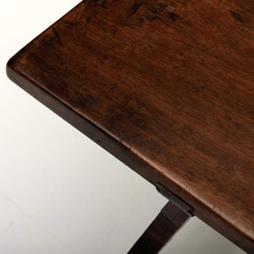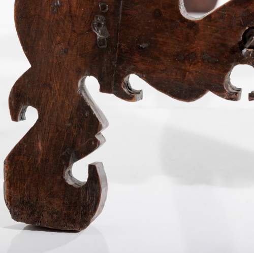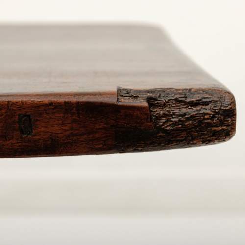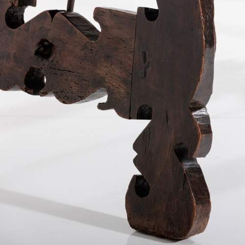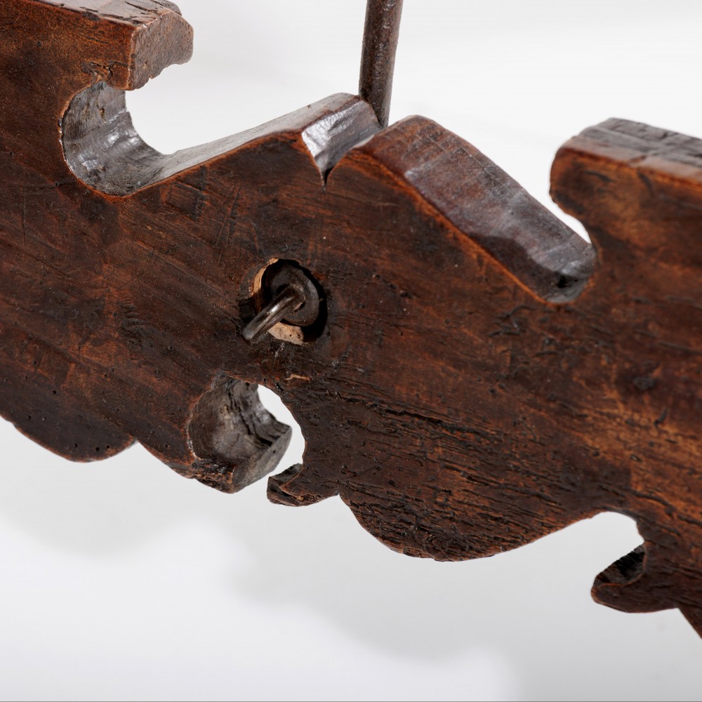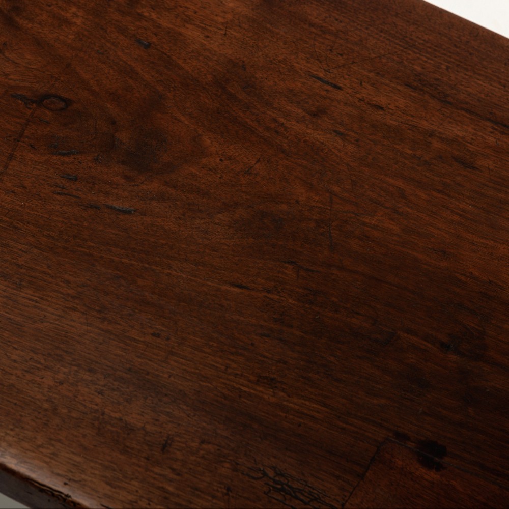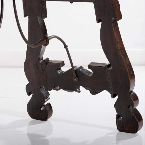 Stock Number: 4537Bold, single plank walnut table. Intricate carved legs. with wrought iron stretcher. Wear commensurate with age. Several well executed historical spliced repairs to the top. Spain, Circa 1860.