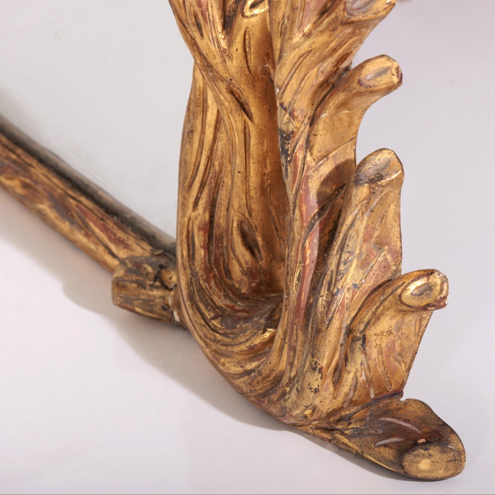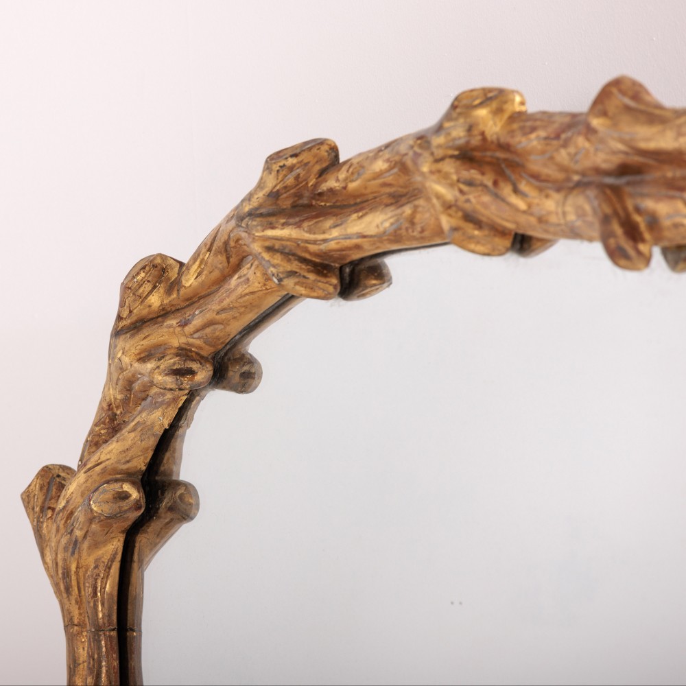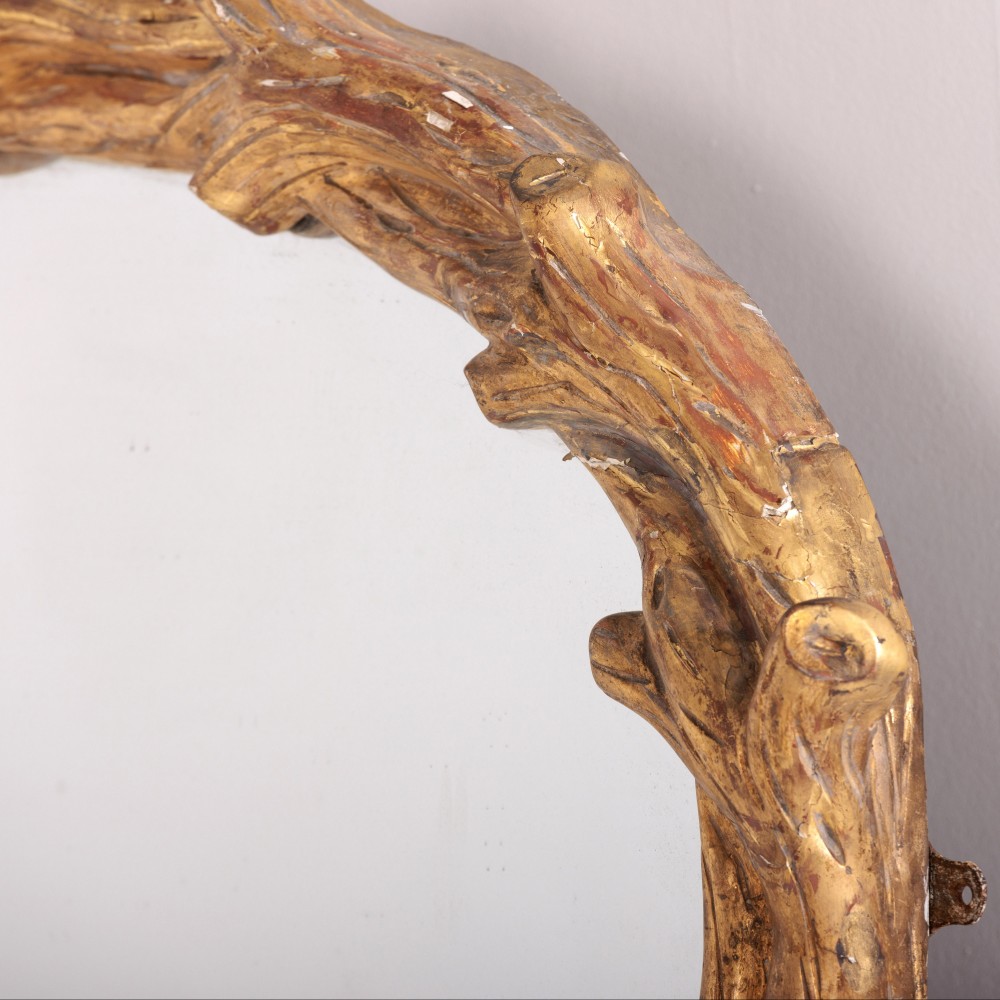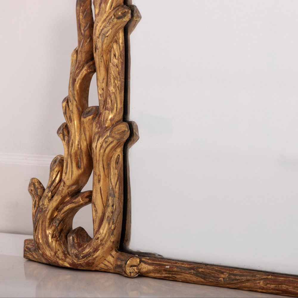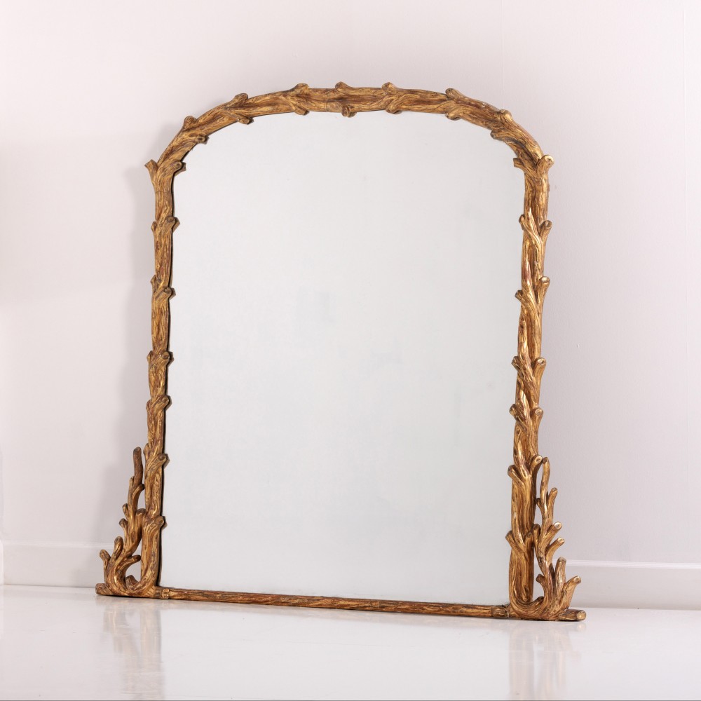 Stock Number: 4564Large Naturalistic Faux Bois Giltwood Overmantle Mirror. Excellent original clean mirror plate, sparkling mercury glass comes alive once it catches the light. Super statement mirror. England, Circa 1840..