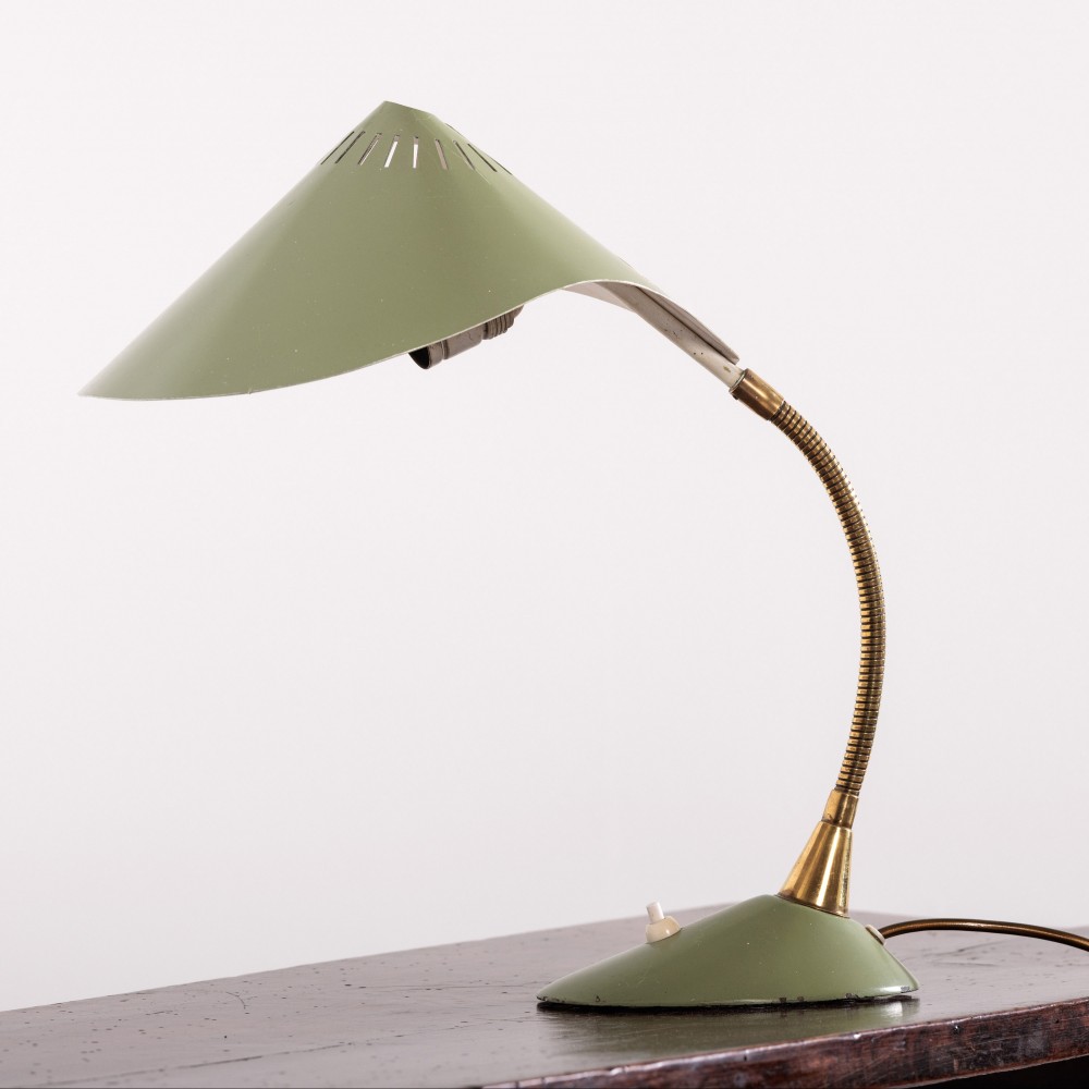 Stock Number: 4572Cosack Cobra Table or Desk Lamp by Gecos Named after its zoomorphic cobra like shade. Articulates in multiple directions. Completely original, Lightly cleaned, rewired and PAT tested Excellent condition in wonderful colour way E27 Screw Bulb