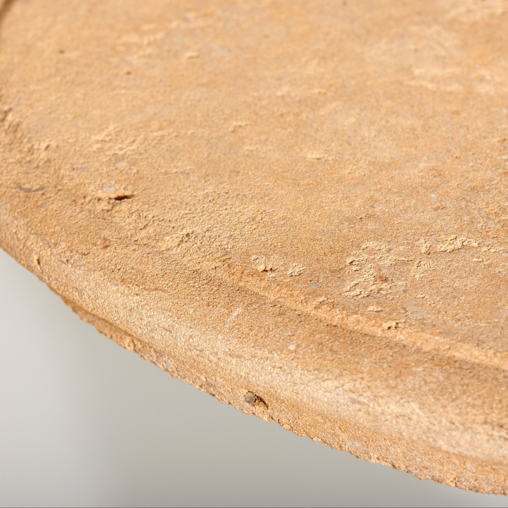 Stock Number: 4609Golden Cotswold Limestone. With exceptional pinky golden pastel hue and appealing natural strata patterns. The extraordinary colour is created by the presence of miniscule quantities of iron minerals present in the stone. Best placed in your interior dappled in natural light, as the stone appears to take on subtle different colours with the changing light. Due to the nature of stone, slight colour tone and linear strata will be slightly different. Some blemishes and marks in the surface from the natural stone. 21st Century.