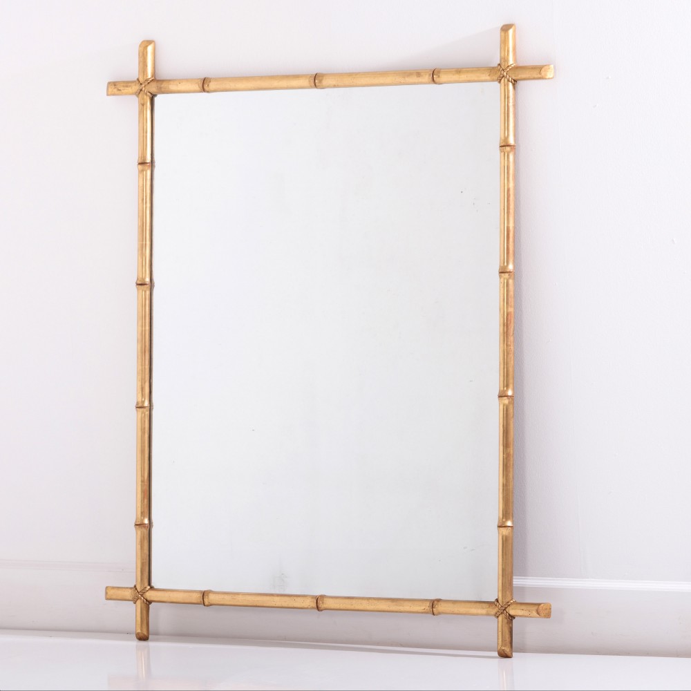 Large Giltwood Faux Bamboo Mirror with Sparkling Mercury Plate