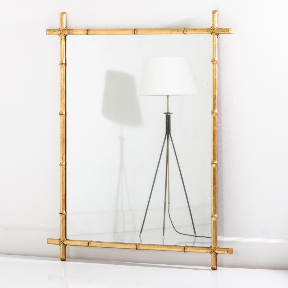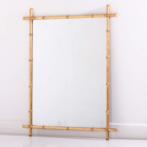 Stock Number: 4568Large Simulated Bamboo Giltwood Mirror Water Gilded Remarkable, Sparkling mirror plate. France, Circa 1890.