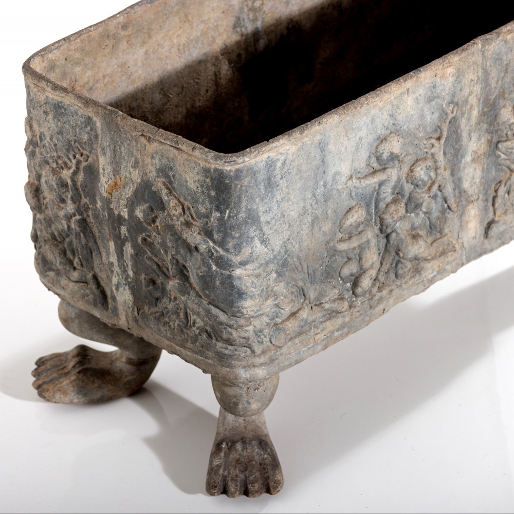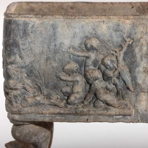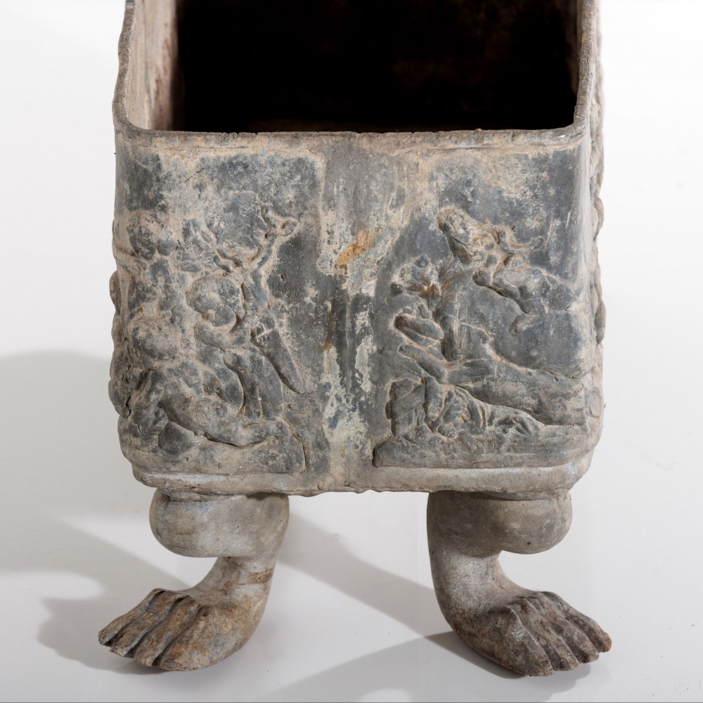 Stock Number: 4606Unusual Early 20th Century Lead planter. Raised on Lion Paw feet, Neoclassical scene decoration in the round. Found in good condition, wear commensurate with age. England, Circa 1920.