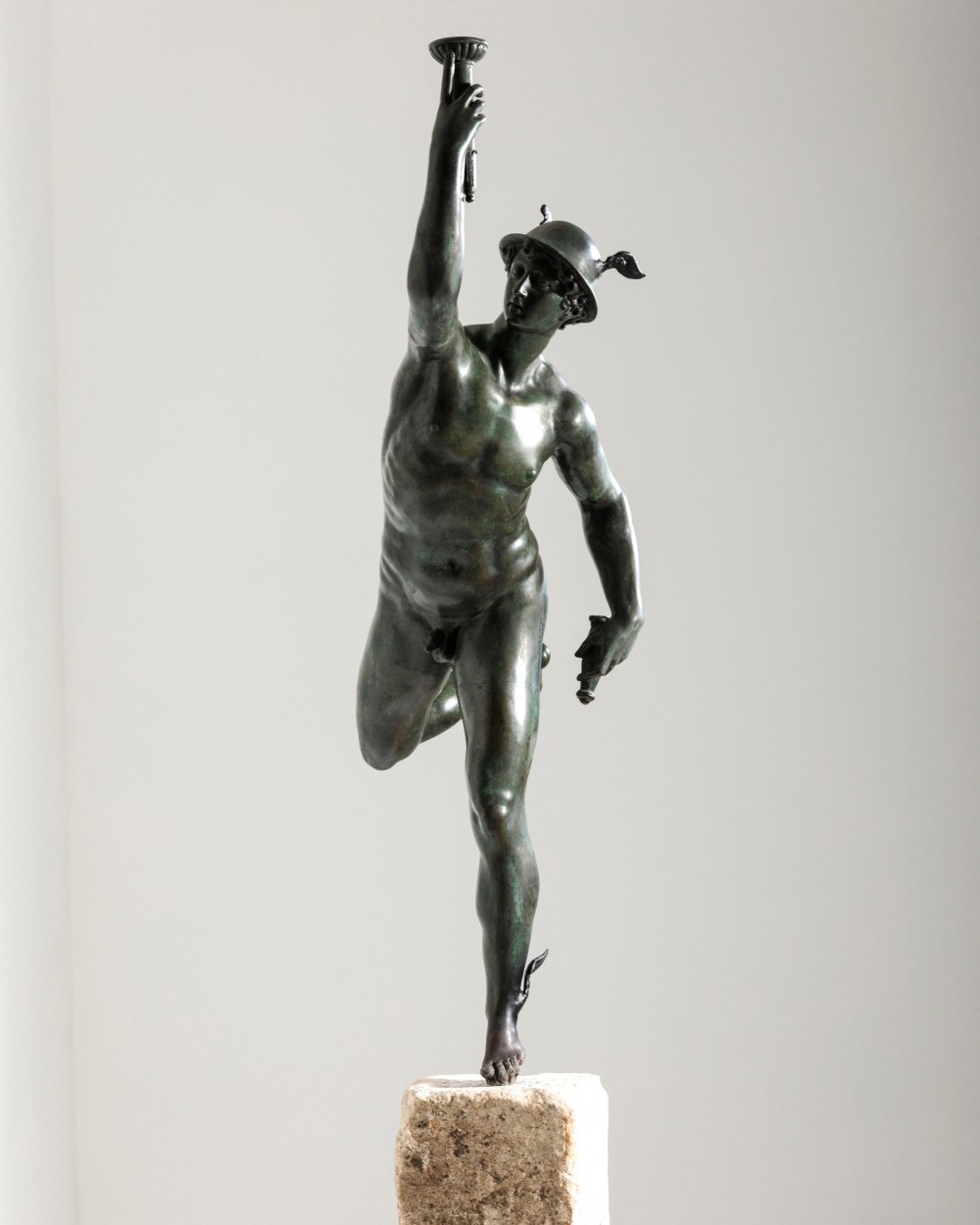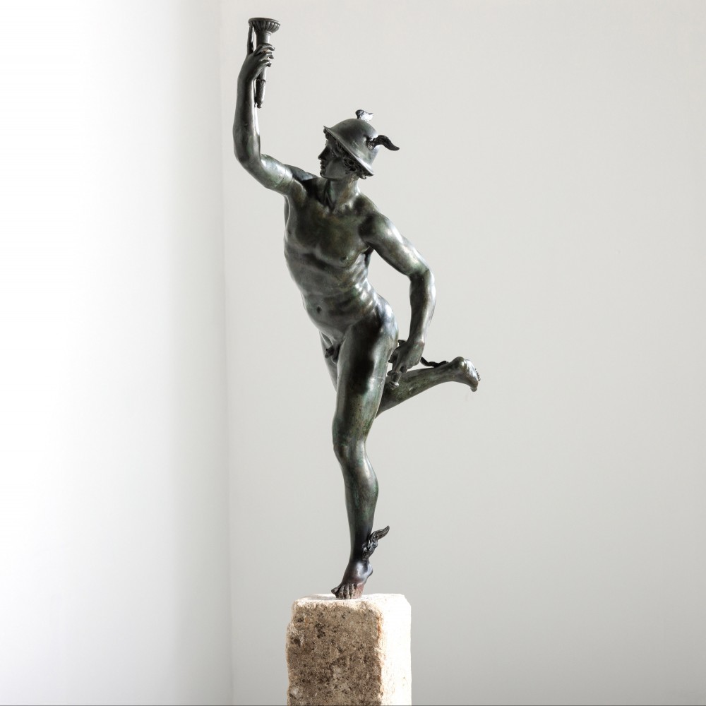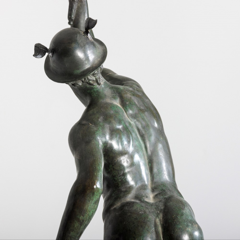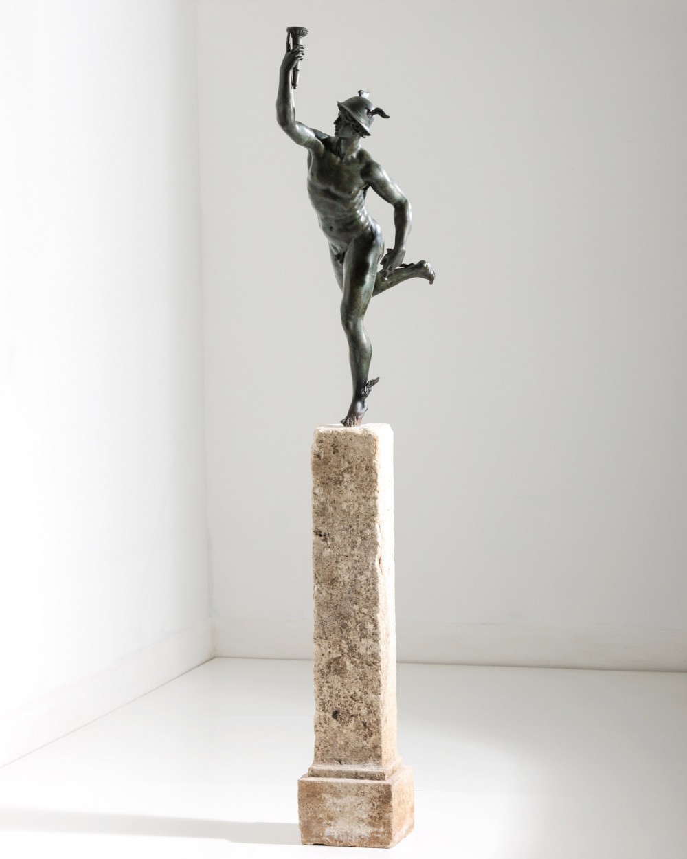 After Giambologna - Large Grand Tour Bronze of Mercury on Carved Stone Column