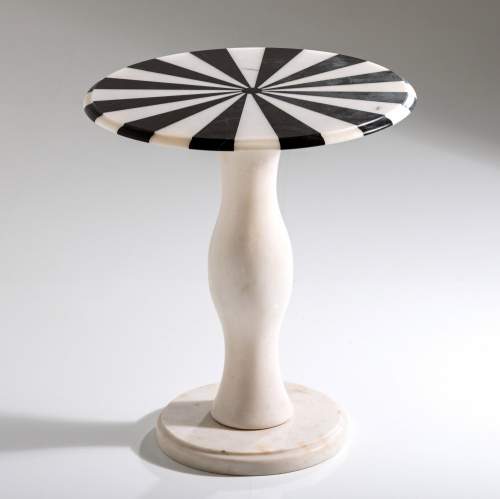 Striking Stone Pedestal Table with Inlaid Marble Radial Top