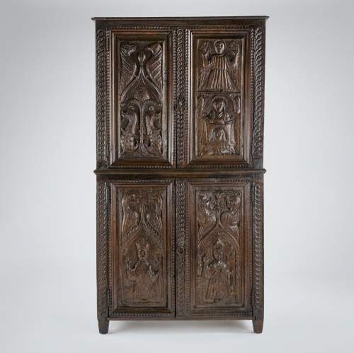 Late 19th Carved Oak Cupboard Made from 16th/17th Century Panels from Chateau Grignon