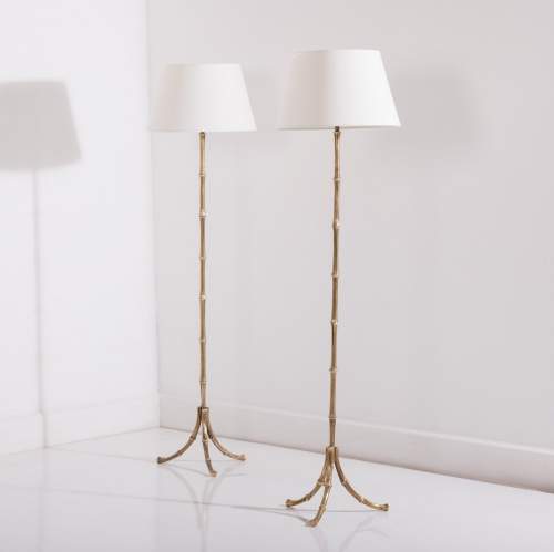 Pair Faux Bamboo Floor Lamps in the Manner of Maison Bagues